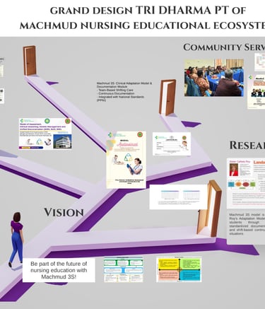 Sebuah ekosistem yang kami bangun dalam rangka pelaksanaan Tri Dharma Perguruan Tinggi yang memuat research and development model dan format pendokumentasian untuk memenuhi standar profesi penulisan diagnosis keperawatan dalam kerangka format pendokumentasian asuhan keperawatan berbentuk Nursing Record, sehingga diharapkan proses belajar mengajar antara mahasiswa dan dosen serta preseptor klinik dapat berjalan dengan baik dan menghadirkan suasana akademik yang saling menghebatkan profesi keperawatan